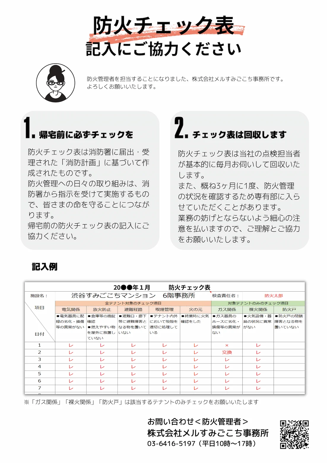 ・防火チェック表記入にご協力ください